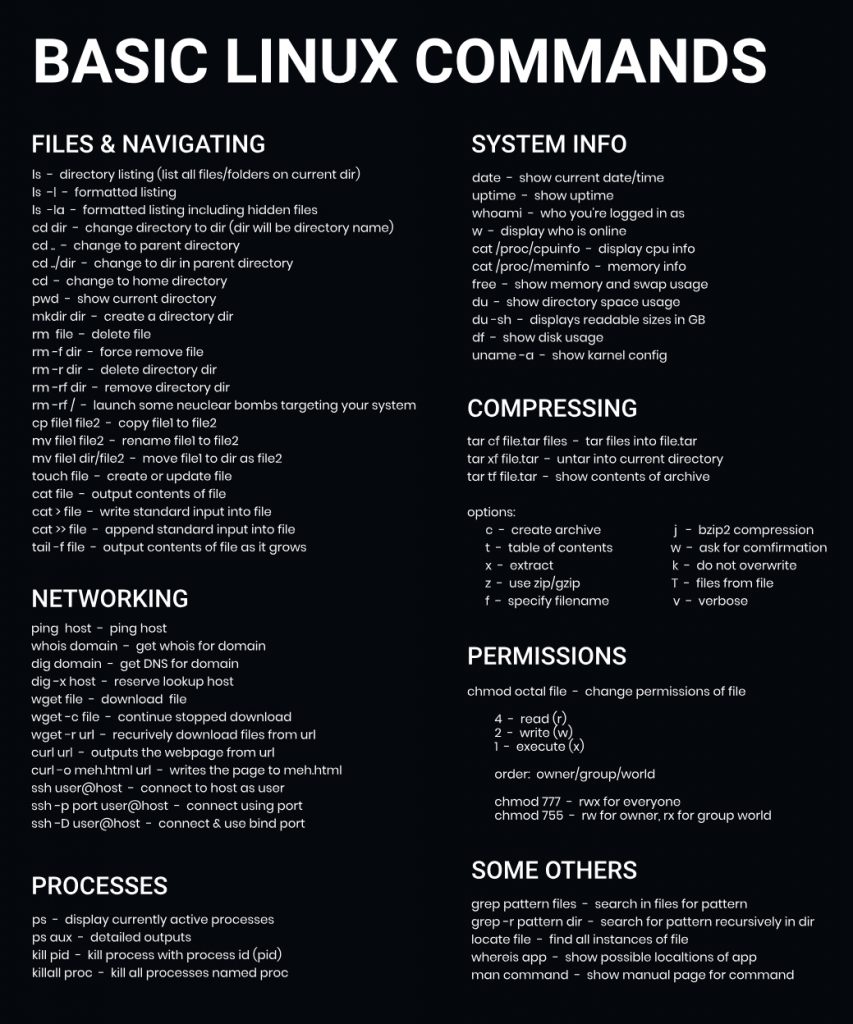 Basic Linux commands 2019-03-24Nick Leffler #CentOS #Debian #Desktop #Linux #Networking #Servers #Software #Tech This isn’t my picture I found it on reddit. <- OTHERS -> ← USB Panic Button – Windows 10 compatible Screenly →